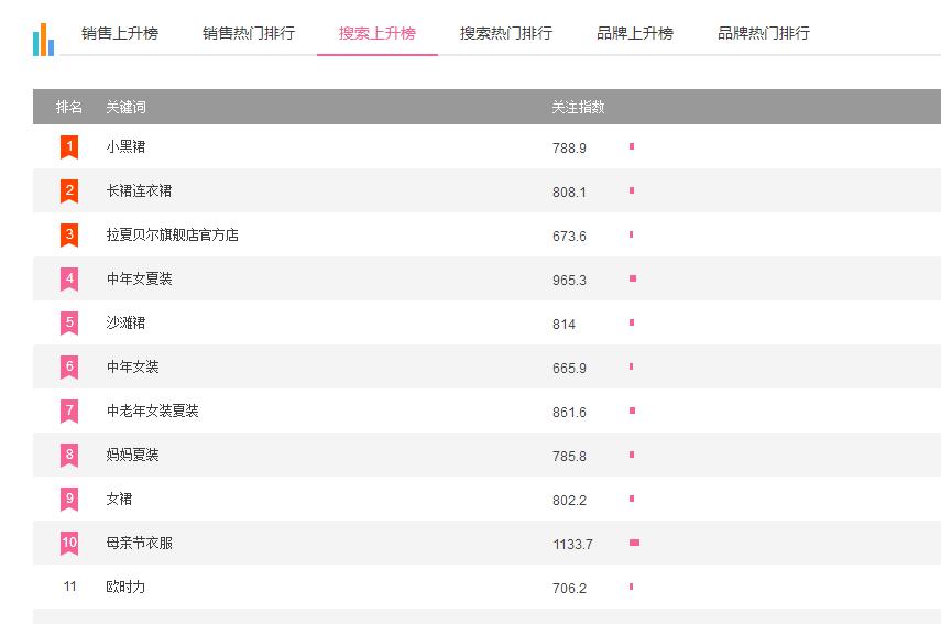 我们可以通过淘宝排行榜找到搜索量持续上升的关键词,通过这些关键词组合标题,也可以直接让我们的产品让我们的新品能够获得更多的流量。