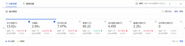网店代运营坚持用低出价,高溢价的方式来操作直通车,直通车流量以及投产都逐渐上涨。尤其到了十月份,直通车效果明显比之前上升了一个阶梯,这期间除了不断的优化直通车本身外,还要结合客服反映的问题优化店铺内功等。