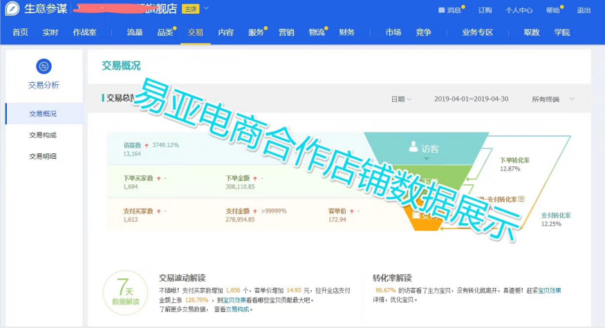 易亚电商合作三个月店铺数据展示,店铺0基础合作3个月,借势618单月完成180万➕销售额,现在日销稳定2万!天猫红利期,商家们一定把握机会,下半年爆发机会更大!